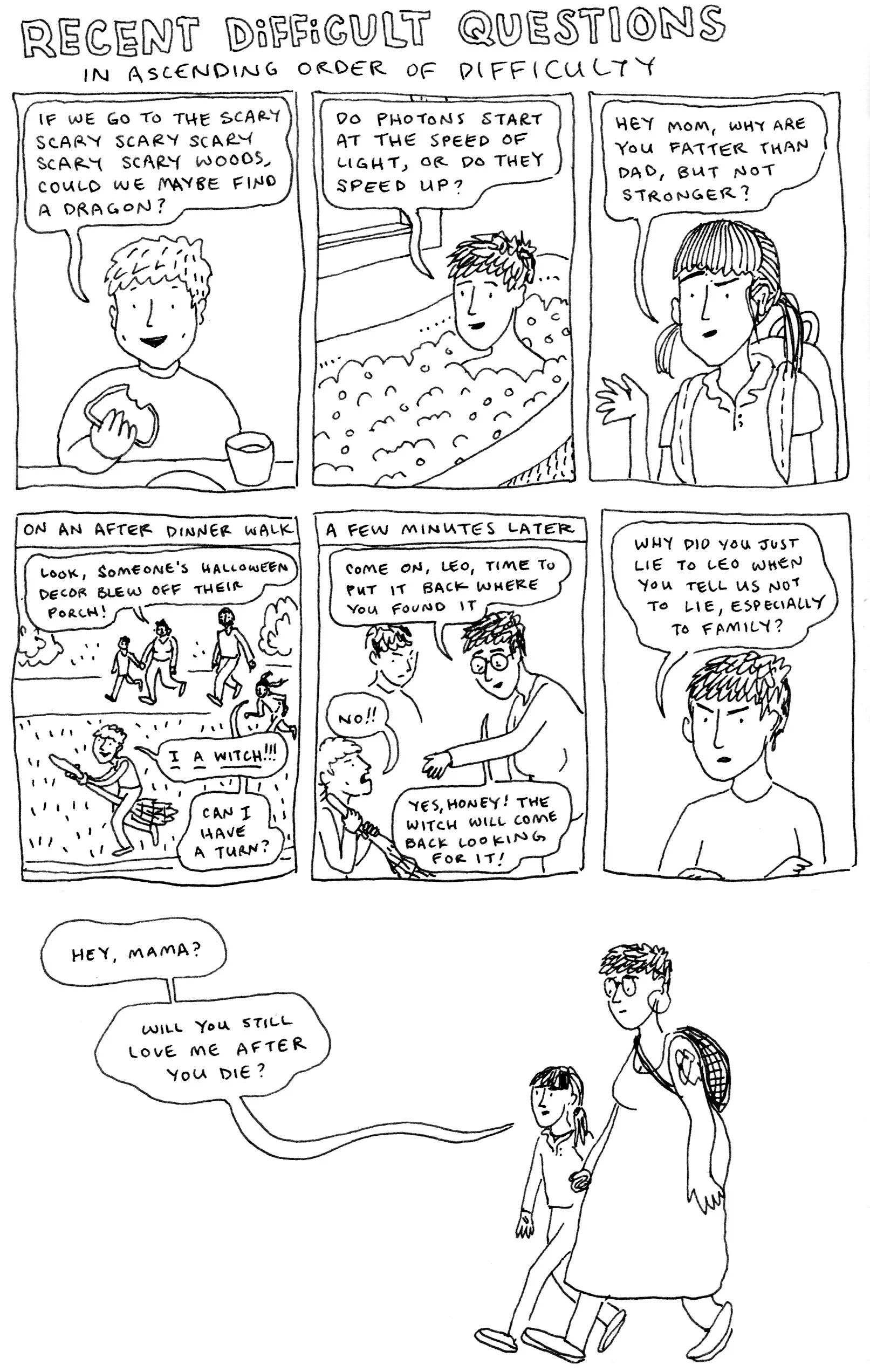 This book collects diary comics drawn quickly in a sketchbook, straight to ink with no sketching or planning, as part of a lifelong effort to loosen up. They are part of a personal practice and are presented with almost no editing, except for removing pages that felt too personal.